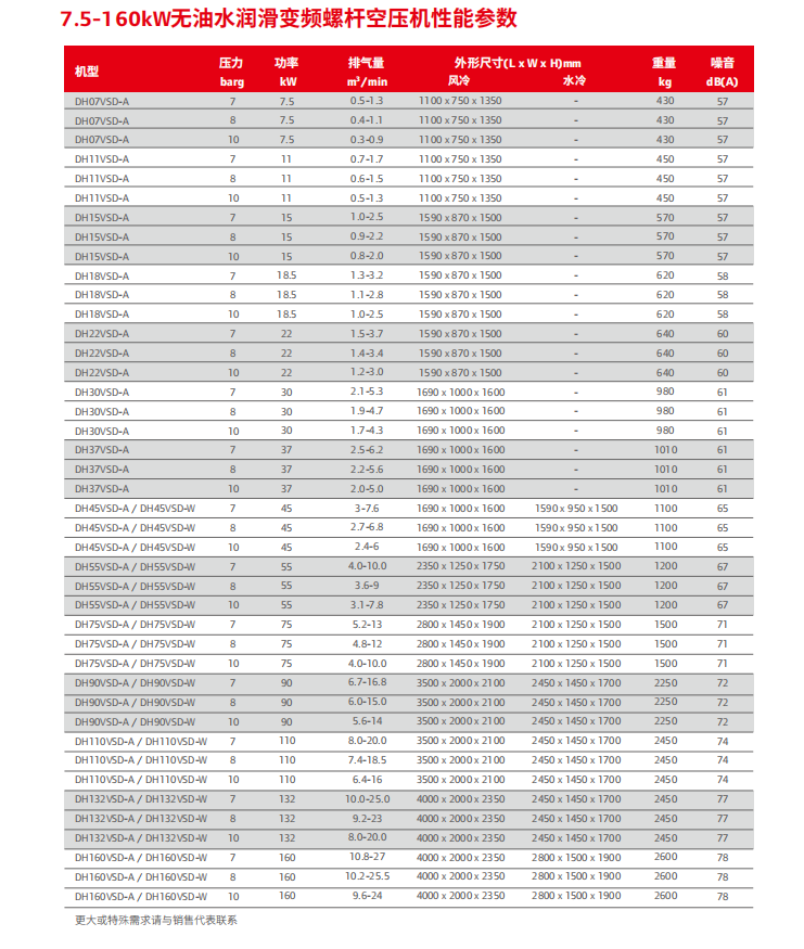 • DH07KW-160kw  無油水潤滑變頻螺桿空壓機(jī)